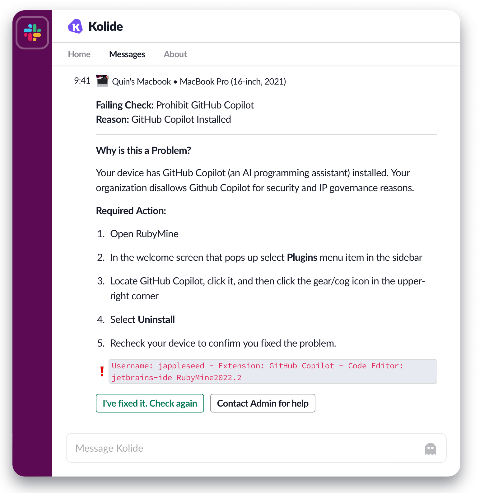 At Kolide, we just released a Check that detects the presence of Copilot on a device, and instructs users to uninstall it. Read our use-case page on that Check to learn more about how it works.
