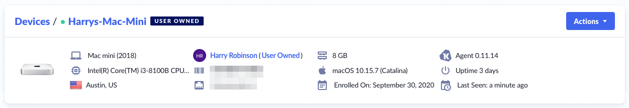 You may be familiar with Private Mode, which restricts the visibility a Kolide administrator has into a device to just the results of Checks. This mode will remain separate from User Owned and both modes can be applied independently to each device. Depending on your requirements, it may make sense for all user-owned devices to be marked Private as well.