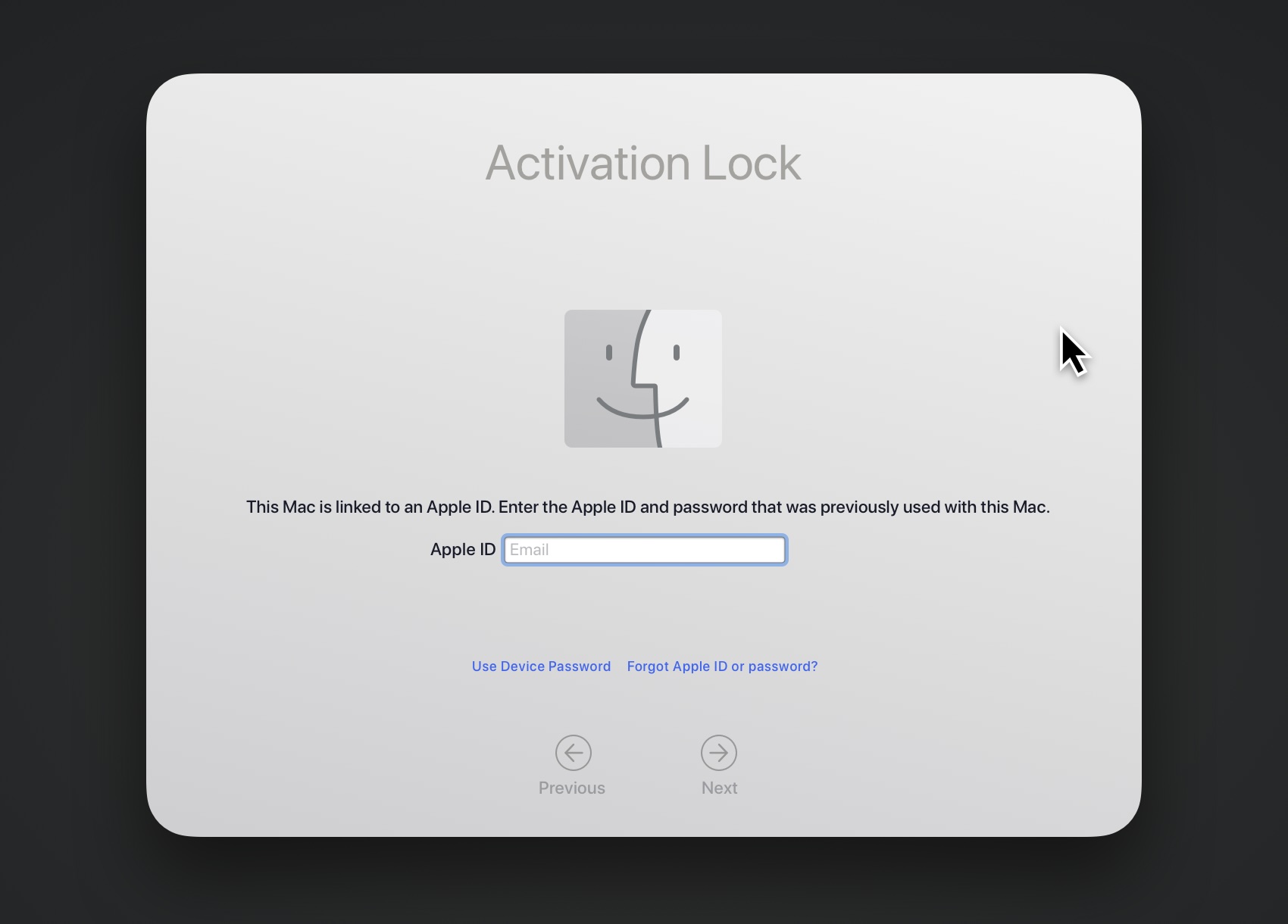 Devices which have Secure Enclaves (T1 and T2 equipped Intel Macs, and all Apple Silicon Macs) and are not enrolled in MDM have a feature called Activation Lock. This feature works with Find My to prevent a device from being recovered or reimaged without the express authorization of the registered Apple ID on the device. This can pose an issue if a company-owned device (with Find My enabled) is returned to an IT department as the device will not be serviceable until that Apple ID has been disconnected or Find My has been disabled.