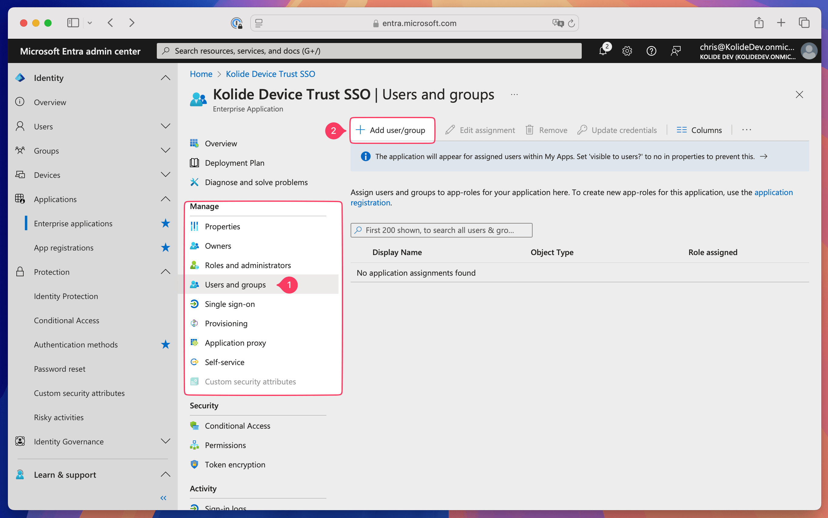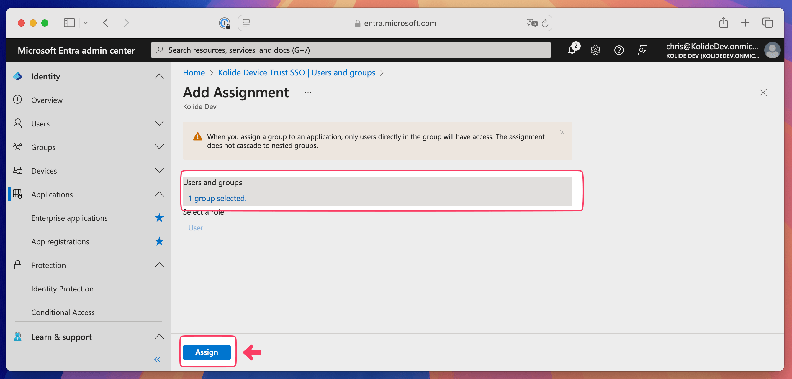 If you want to test the sign-in process with additional users, add them to the Kolide Enabled group. When you’re ready to roll out Kolide more widely, add everyone you want to use Kolide to the group. Anyone who belongs to the group can use the new sign-in flow.