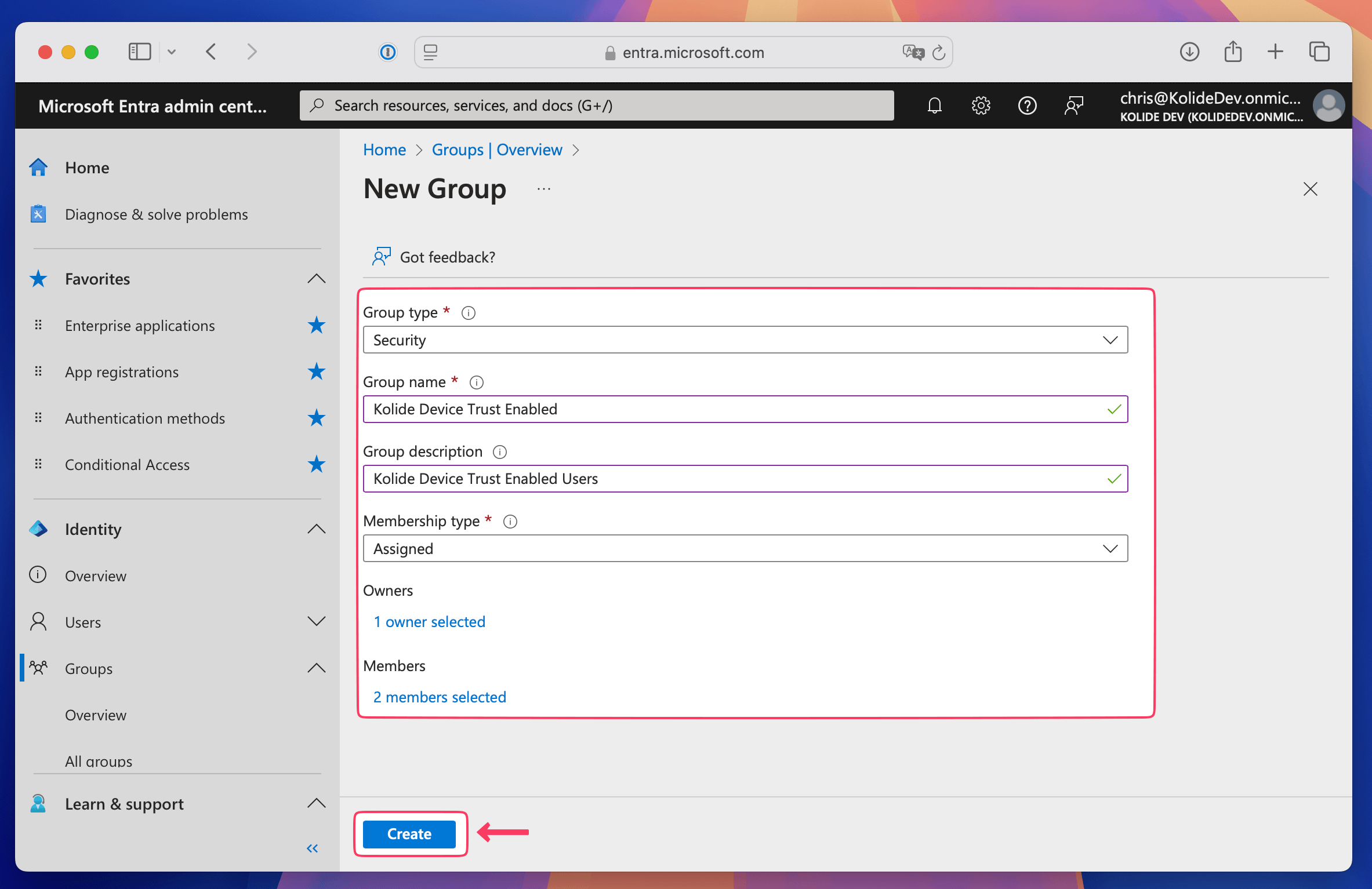 Step 1.1: Create a Kolide-enabled group in Entra ID for testing