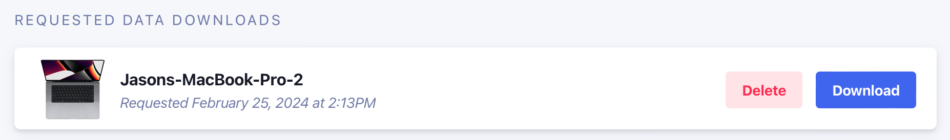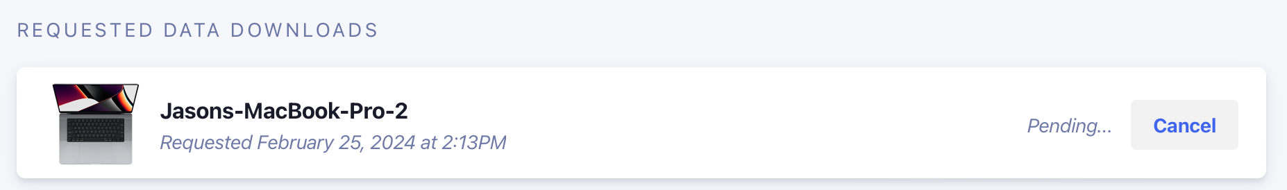 You can request a copy of the latest data Kolide has collected about your registered devices. This export contains the raw data of your device, used to run Checks and populate device properties.