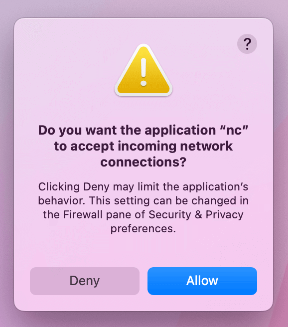 connections you will be prompted with an alert that looks like the following: