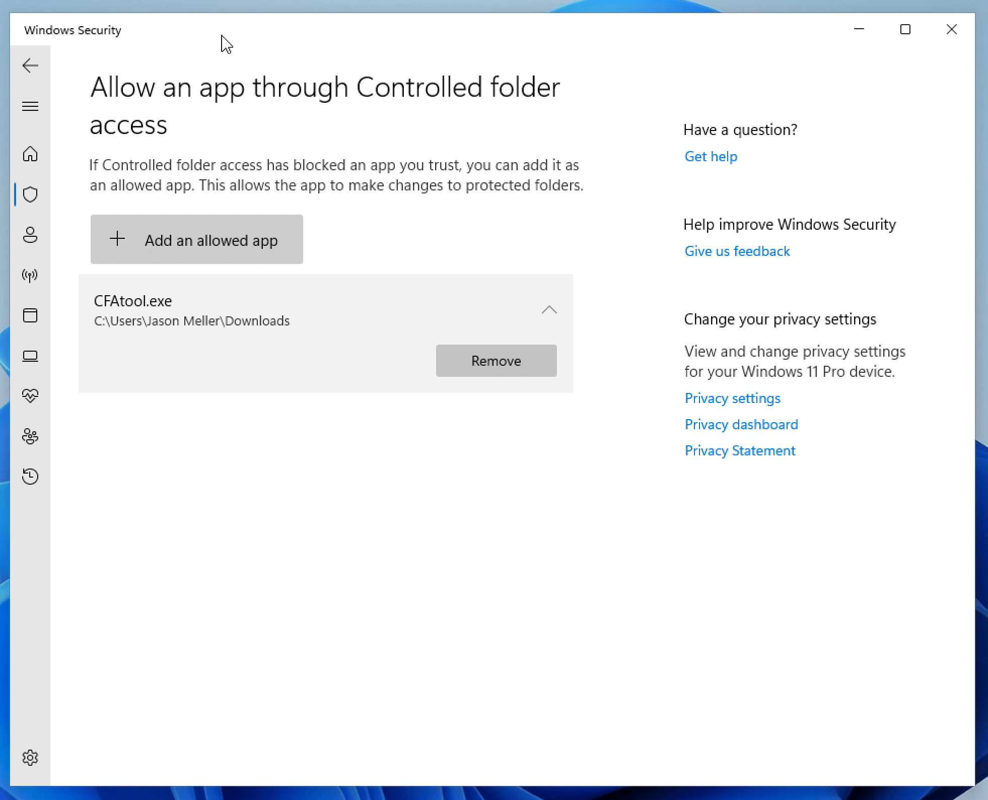 From here, you can choose to add the offending program to the allow list.