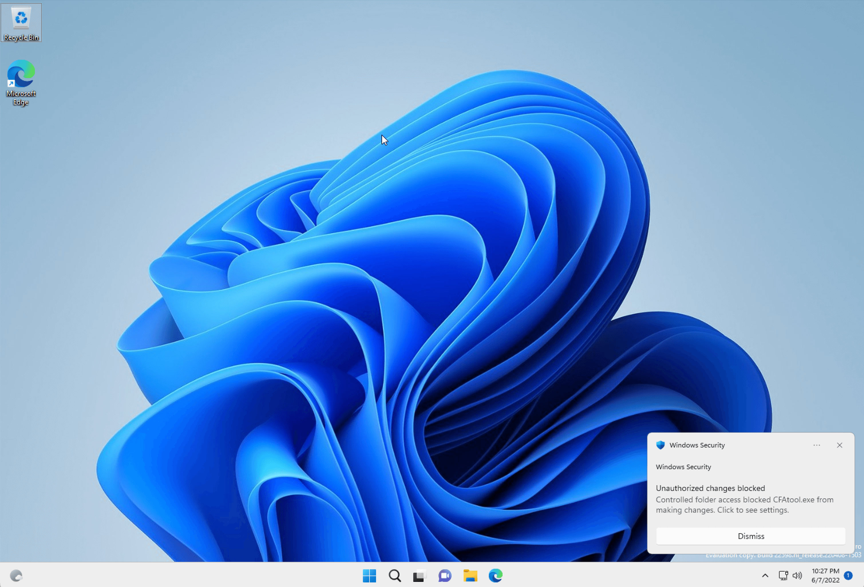 If an unauthorized program attempts to write to any files (including creating new files) the action will now be blocked and the user will receive a toast notification like the one in the following screenshot: